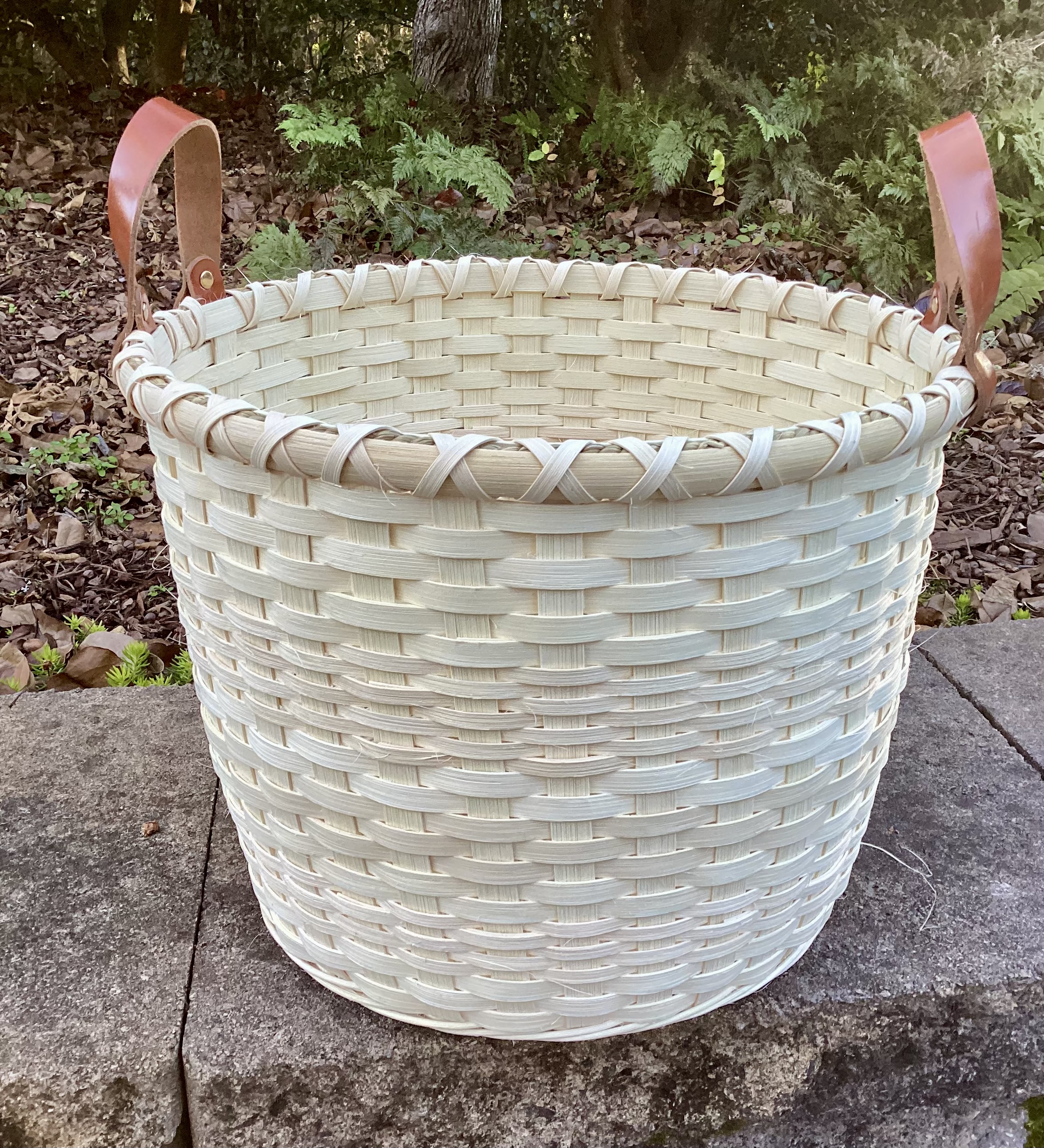 Beginners are welcome to come weave this large, sturdy basket. We will start with a 10" oak base, weaving to a height of 12" and finishing with leather handles. You will find many uses for this beautiful basket. All materials and tools are provided in class. This is a large Basket so plan on four hours to complete.